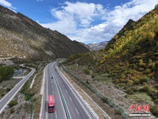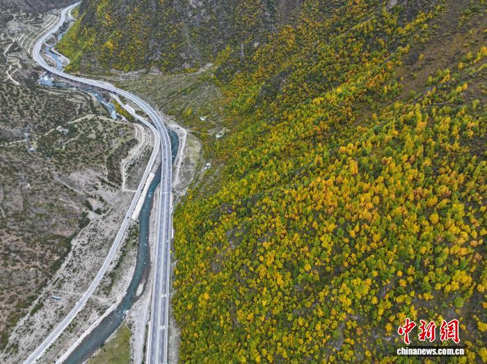 10月1日,西藏自治區(qū)林芝工布江達(dá)縣秋色漸濃,拉薩至林芝的高等級公路沿線成“移動畫廊”。中新社記者 貢嘎來松 攝