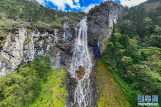 10月10日拍攝的拉郊瀑布(無(wú)人機(jī)照片)。新華網(wǎng) 旦增努布 攝
