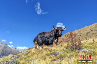 圖為10月16日,嘉黎縣布囊溝景區(qū)牦牛覓食。江飛波 攝