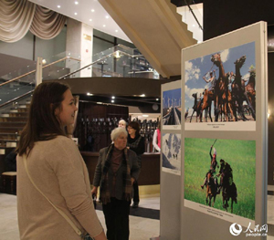 俄民眾在高興地欣賞反映西藏發(fā)展與變化的圖片。人民網(wǎng)記者 張曉東 攝