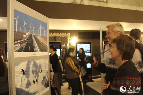 俄羅斯觀眾在欣賞精美的圖片。人民網(wǎng)記者 張曉東 攝
