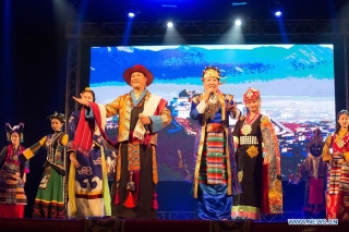 Nov. 28, 2018 -- A performance is staged to showcase the culture of China`s west regions, in St. Petersburg, Russia, Nov. 26, 2018. A series of events showcasing the rich culture of China`s west, especially that of places along the ancient Silk Road, unveiled in St. Petersburg on Monday. Dancers and singers from northwest China`s Gansu Province and southwest China`s Tibet Autonomous Region performed in the gala. (Xinhua/Motina)