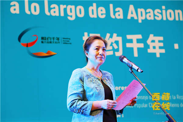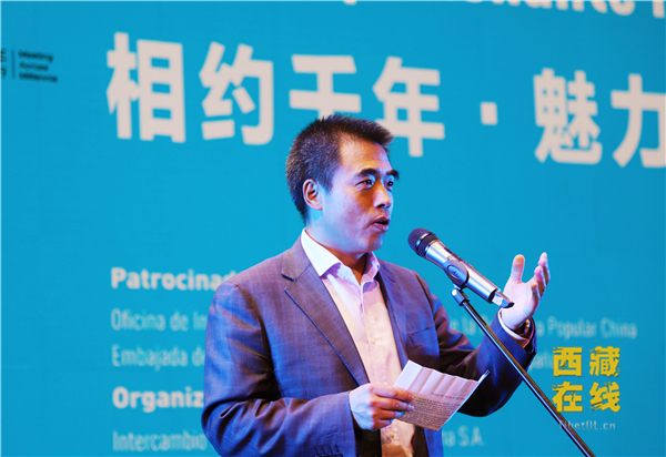 中國(guó)駐西班牙大使館公參姚飛致辭。西藏在線網(wǎng)記者 馬陽(yáng)陽(yáng) 攝