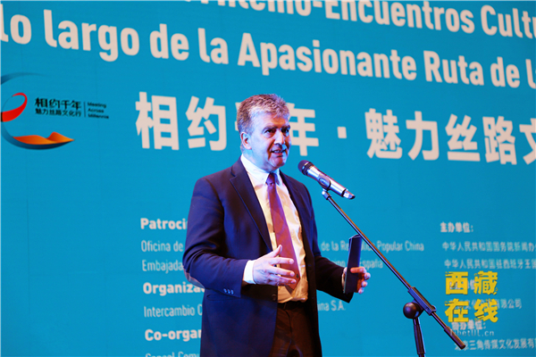 科西多先生在致辭中表示,所有的商貿(mào)往來(lái)都有更深層的含義,比如文化方面的交流,絲路文化就是最好的證明。在多年歷史發(fā)展中,西班牙逐漸意識(shí)到學(xué)習(xí)借鑒亞洲文明尤其是中華文明的重要性。中國(guó)提出的“一帶一路”倡議對(duì)西班牙來(lái)說(shuō)是個(gè)絕好的機(jī)會(huì)。它不僅將中國(guó)和歐洲與西班牙緊密聯(lián)系在一起,也將整個(gè)絲路沿線國(guó)家和世界各國(guó)與西班牙緊密相連。