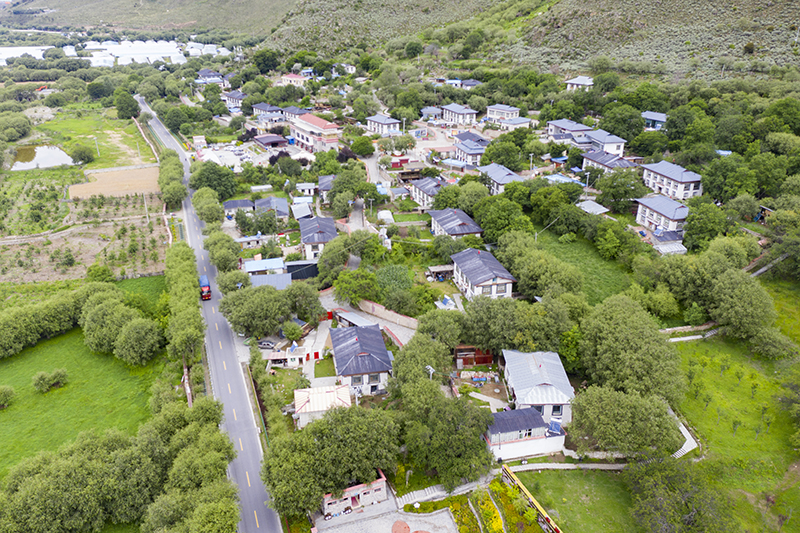 俯瞰林芝市巴宜區(qū)林芝鎮(zhèn)嘎拉村(無人機(jī)照片,7月21日攝)。新華社記者 普布扎西 攝