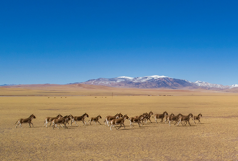 這是在西藏羌塘國家級自然保護(hù)區(qū)拍攝的藏野驢(無人機(jī)照片,2019年12月23日攝)。新華社記者 孫非 攝