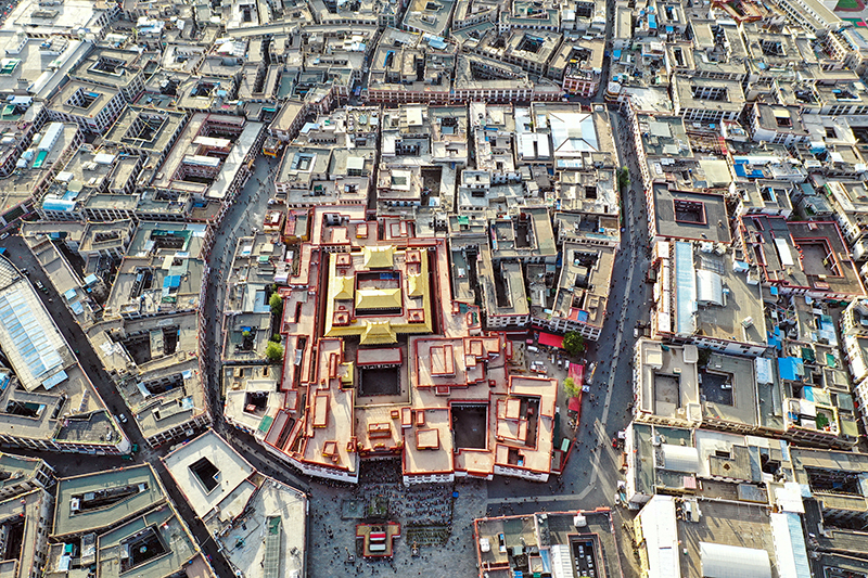 鳥瞰拉薩八廓街(無人機(jī)照片,2019年8月10日攝)。新華社記者 普布扎西 攝