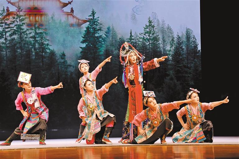 平珍(右三)表演藏戲《卓娃桑姆·尋王》舞臺(tái)照。