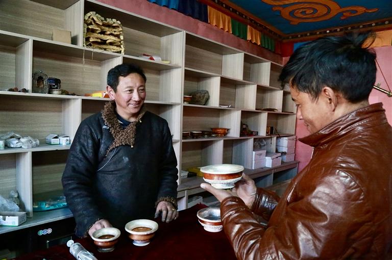 43歲的次央多吉是墨竹工卡縣級(jí)非物質(zhì)文化遺產(chǎn)阿吉祖玉傳承人。這份傳承的使命,自他的祖輩起便已延續(xù)。在他的記憶中,長輩們熟練掌握這項(xiàng)非遺技藝的身影,深深烙印在他的心中。“阿吉祖玉是祖先傳下來的東西,不能丟。”抱著這樣堅(jiān)定的想法,次央多吉在年少時(shí)便立下決心,要將這門技藝傳承下去,并不斷發(fā)揚(yáng)光大。