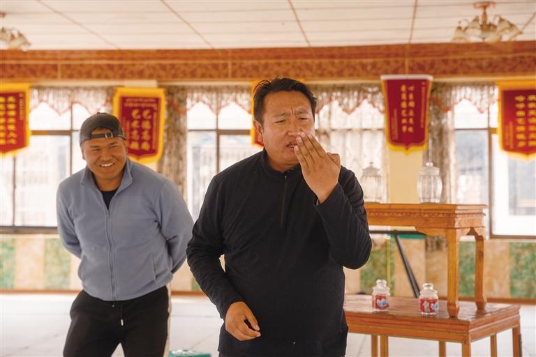 在藝術團的歲月里,他們走進田間牧區(qū),搜集生活中的素材,聆聽群眾的心聲,開始鉆研嘗試將群眾喜聞樂見的生活瑣事融入曲藝表演中。“我自己就是普通群眾,我的經歷就是最好的劇本。”羅布告訴記者。