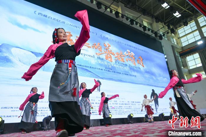 圖為演員佟麗婭穿藏裝出席電影《遙遠(yuǎn)的普若崗日》殺青儀式。貢嘎來松 攝