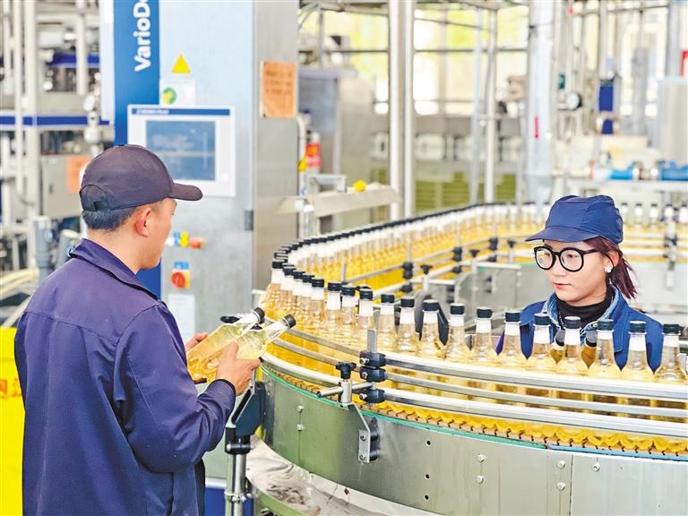 西藏娃哈哈食品有限公司員工在調(diào)試灌裝機(jī)。