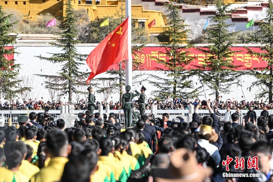 圖為升國(guó)旗儀式現(xiàn)場(chǎng)。中新社記者 貢嘎來松 攝