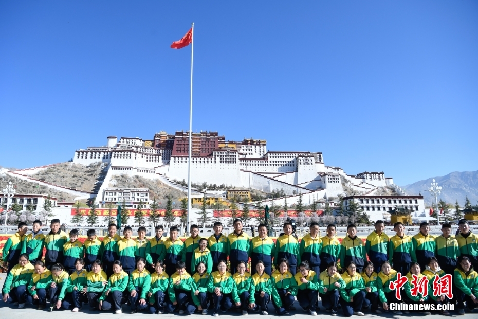 圖為學(xué)生在紀(jì)念活動(dòng)后合影留念。中新社記者 貢嘎來松 攝