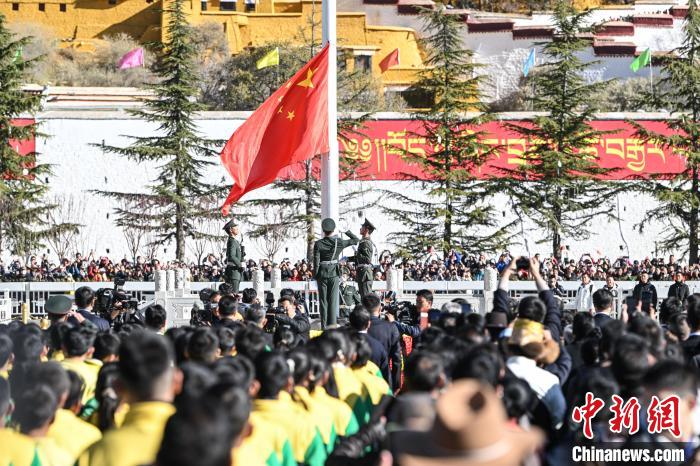 3月28日,“3·28”西藏百萬(wàn)農(nóng)奴解放66周年“升國(guó)旗、唱國(guó)歌”儀式現(xiàn)場(chǎng)?!±盍? 攝
