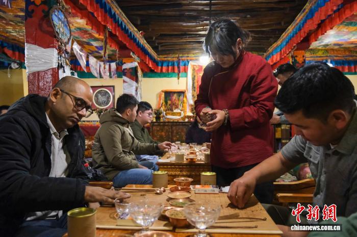 9月18日,多國媒體人員、公務(wù)人員在拉薩八廓街邦達倉古建大院體驗手工藏香制作。中新社記者 江飛波 攝