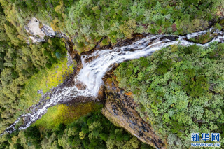 10月10日拍攝的拉郊瀑布(無人機(jī)照片)。新華網(wǎng) 旦增努布 攝