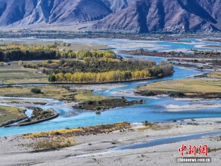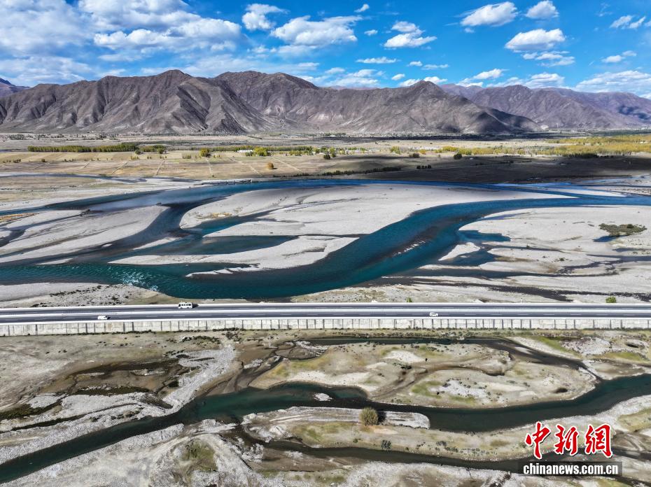 10月15日,西藏自治區(qū)拉薩市墨竹工卡縣境內(nèi)的拉薩河兩岸進入最美秋季,澄澈河水映襯著藍天白云,沿線村莊與拉薩至林芝高等級公路相映成趣,美景如畫。